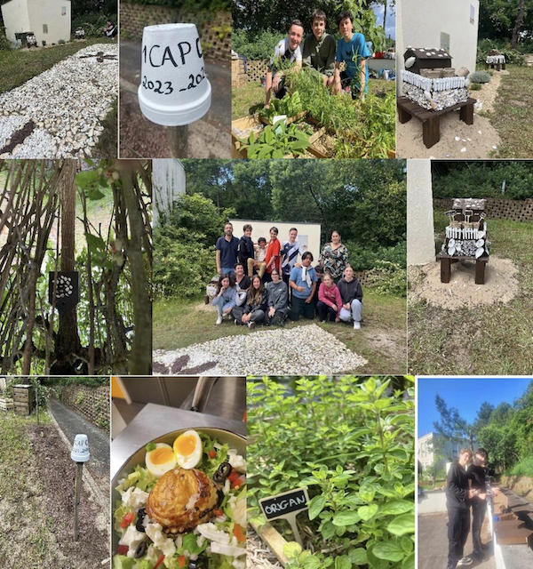 Dans le cadre du chef d’oeuvre, les élèves de CAP Cuisine (Première et Terminale) du Lycée Professionnel Condorcet Arcachon ont réalisé leur projet autour des Herbes Aromatiques avec la création d’un potager et la plantation de pieds de vigne. Le chef d’oeuvre se réalise en 2 ans pour mettre en oeuvre des compétences transversales.