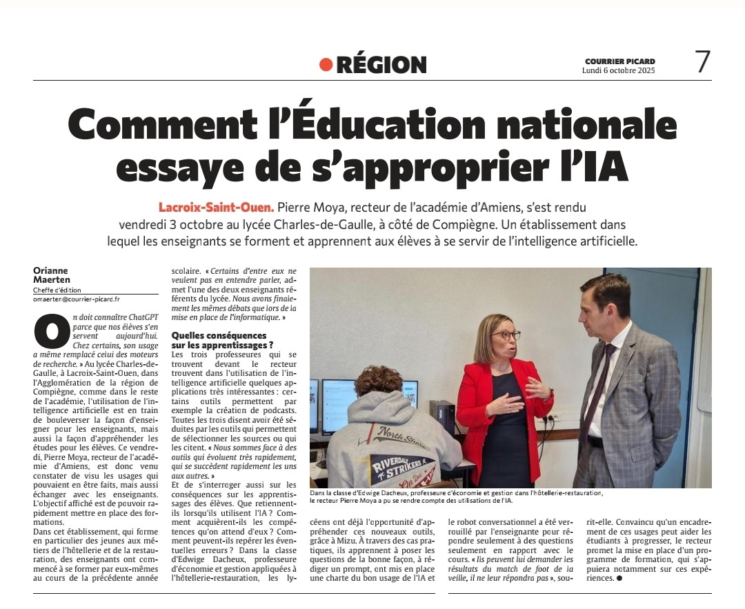 Expérimentation IA en économie-gestion hôtelière – Lycée Charles-de-Gaulle (Compiègne)